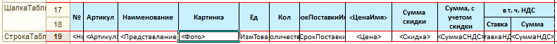 Картинки во внешней печатной форме (Шапка и табличная часть)