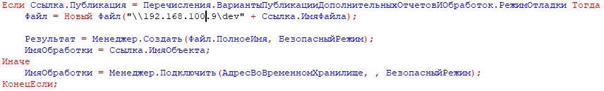 Если Ссылка.Публикация = Перечисления.ВариантыПубликацииДополнительныхОтчетовИОбработок.РежимОтладки Тогда