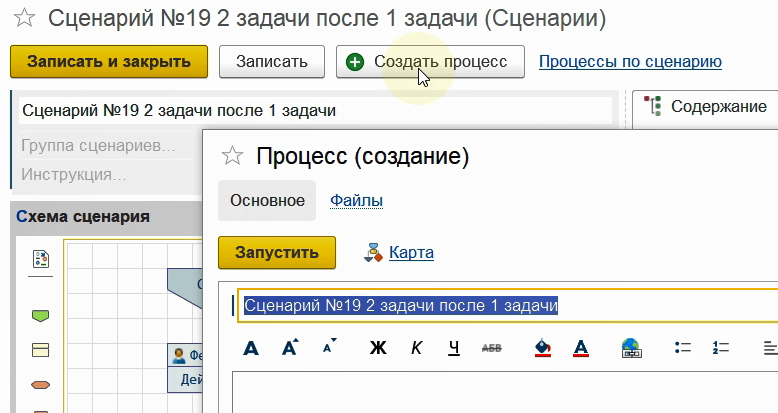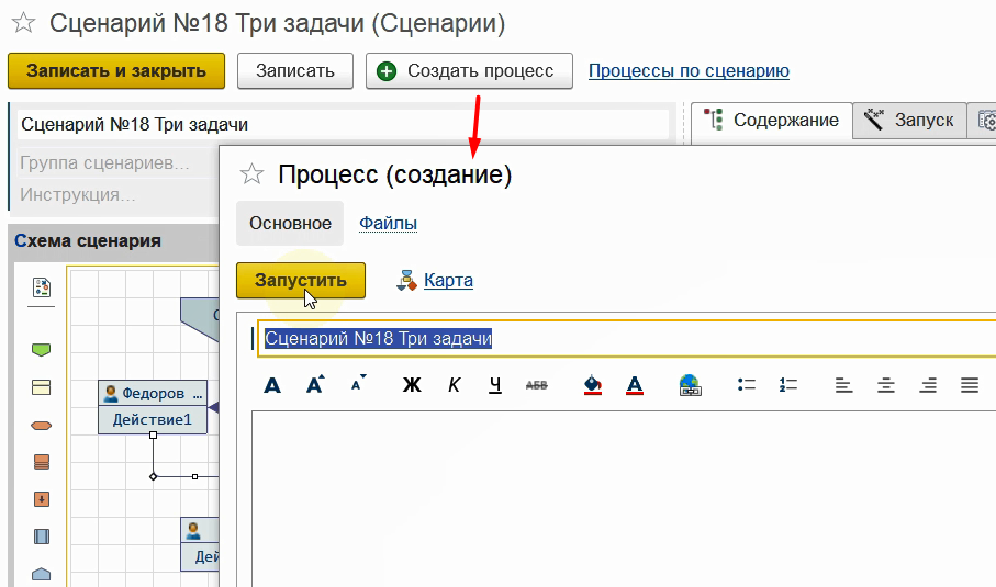 Запишем сценарий и запустим по нему новый процесс.
