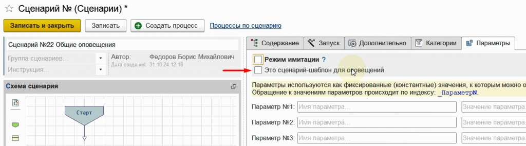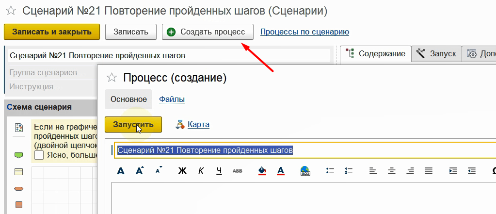 Запишем сценарий и вернемся в наш процесс.