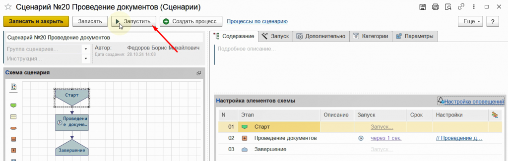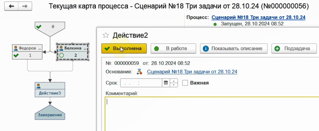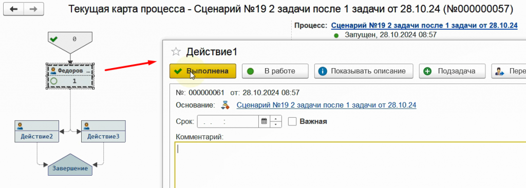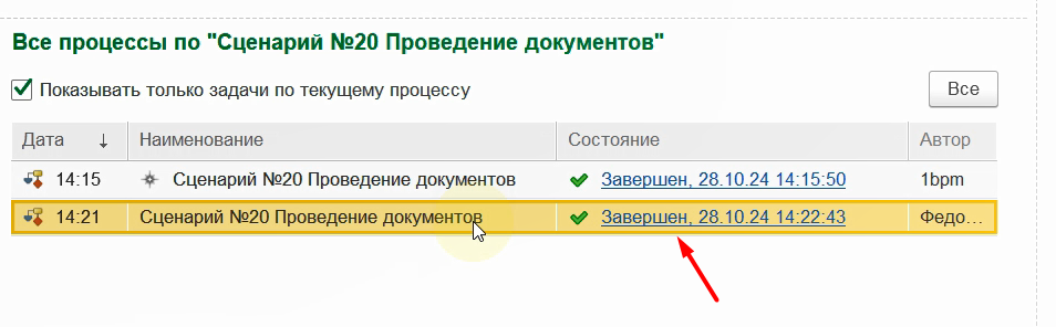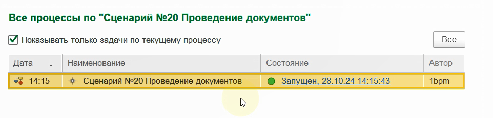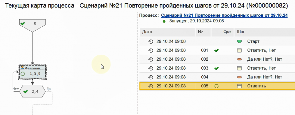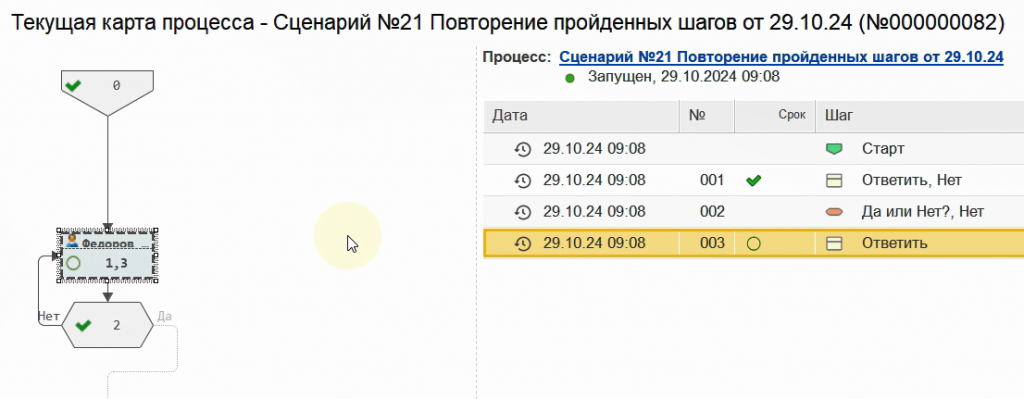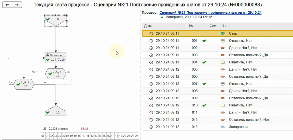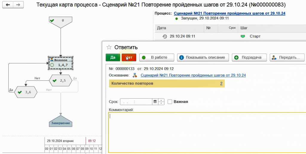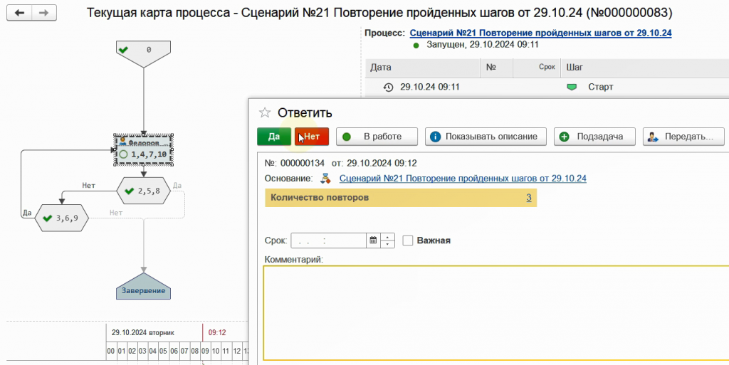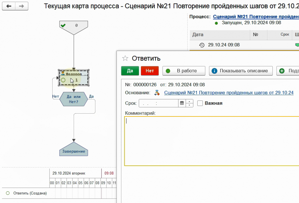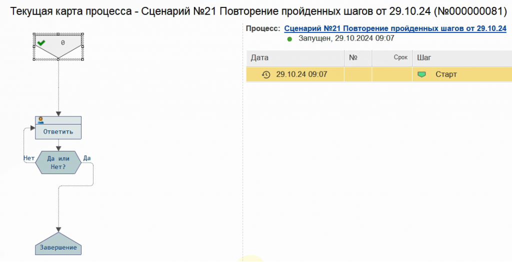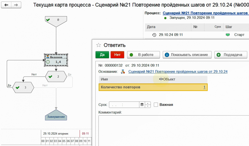 Снова запустим бизнес-процесс по данному сценарию.