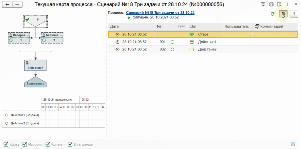 Откроем карту процесса. На карте видим две задачи к выполнению.