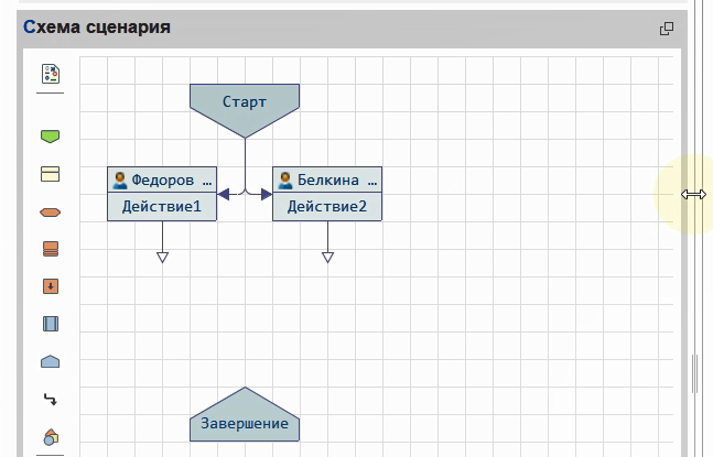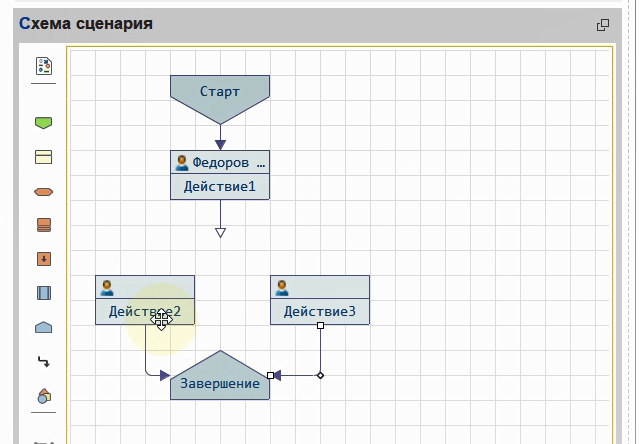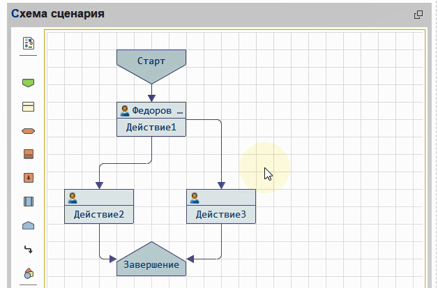 Возьмем пустой сценарий и добавим в него задачу. Она стартуют при запуске процесса.