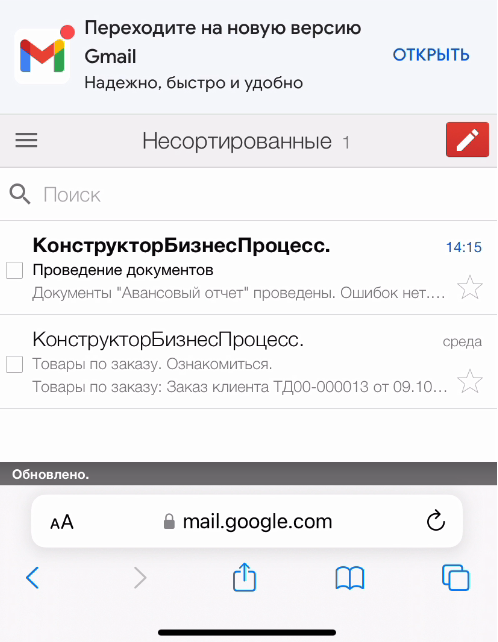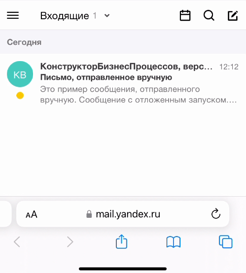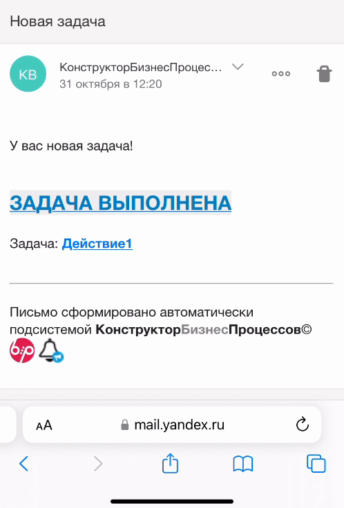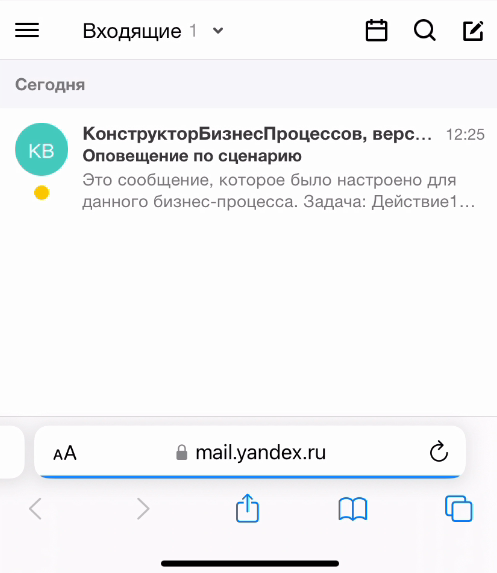 Запустим по сценарию новый бизнес-процесс. Исполнитель получил оповещение о новой задаче.