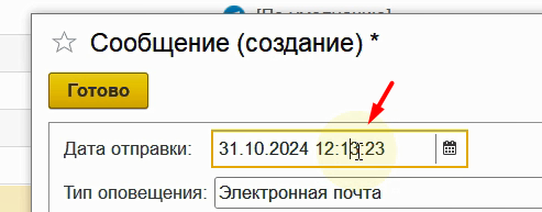 Дату отправки можно изменить, выбрав любую дату и время. Пусть сообщение будет отправлено через 10 минут.