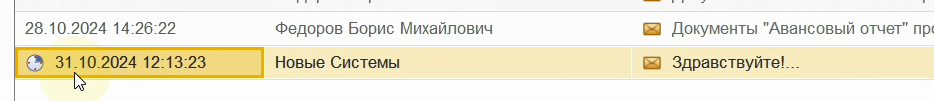 В списке, сообщение с отложенным запуском отображается с пиктограммой.