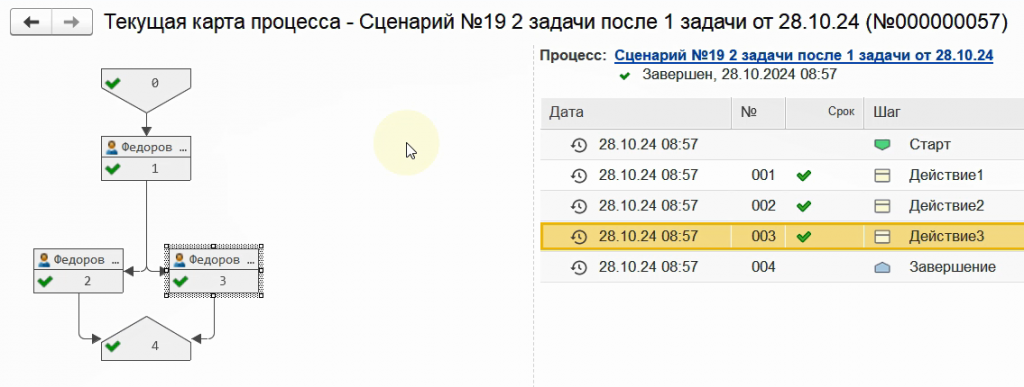 После завершения первой задачи, одновременно сформировались две последующих.