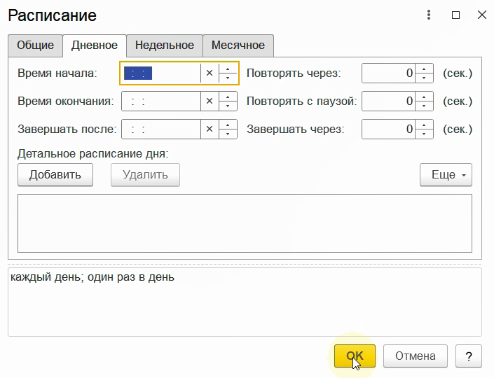 Каждый день. Точное время для примера указывать не обязательно.