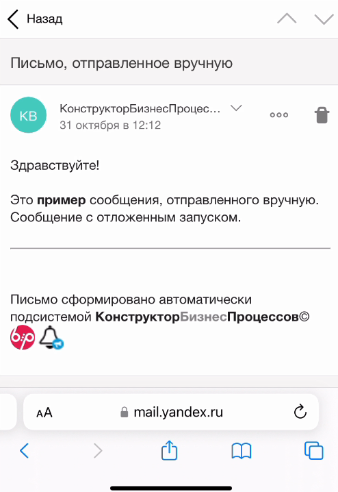 Сотрудник, указанный в настройках оповещения, получит письмо о результатах проведения.