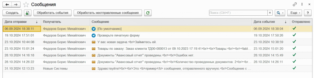 Отправить сообщение вручную можно из списка сообщений.