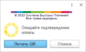 • Кассир выбирает способ оплаты «СБП», на экране кассового рабочего места отображается диалоговое окно ожидания оплаты.
