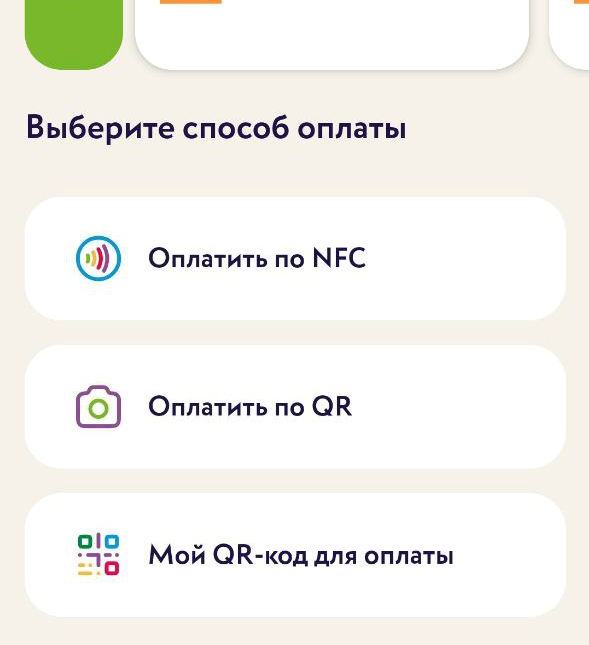 1.Покупатель в платежном приложении на своем мобильном устройстве выбирает способ оплаты «Мой QR код для оплаты»