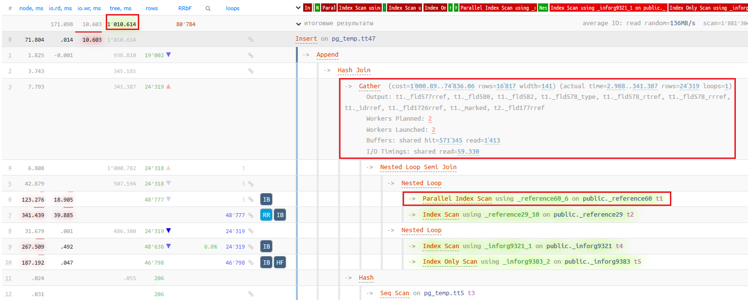 Блокером для использования параллелизма в нем является операция вставки во временную таблицу. В Tantor Postgres этот запрос выполнится втрое быстрее за счет возможности использовать параллелизм: