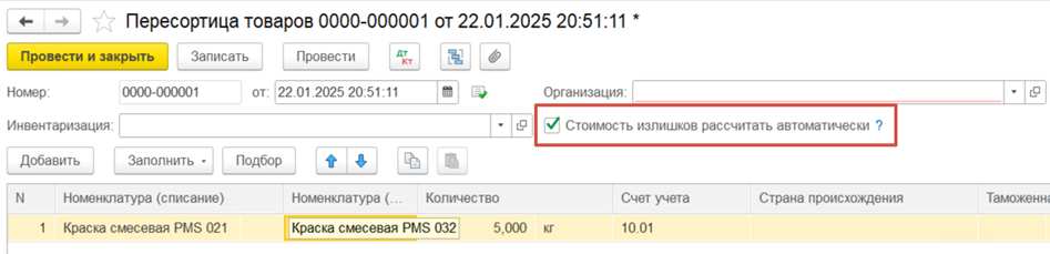 • Убедитесь, что при вводе документов пересортицы используются правильные счета и параметры для учета стоимости товаров.