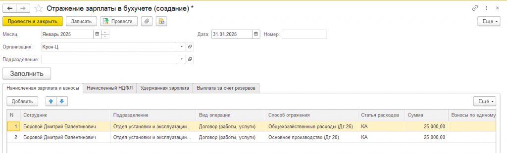 Рисунок 5. Отражения зарплаты в бухучете