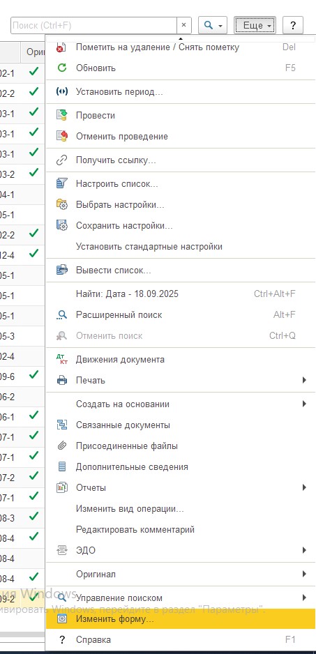 Чтобы НДС отображалась, нужно изменить форму через Еще – "Изменить форму".