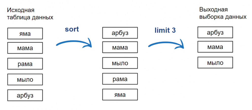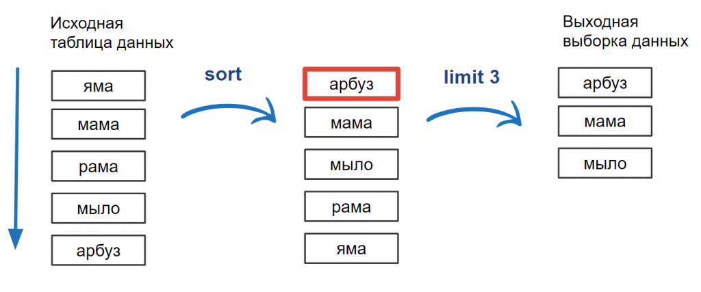 Пусть у нас есть некоторая таблица с данными строкового типа. Данные в таблице расположены в произвольном порядке. И их требуется отсортировать по алфавиту. Например,  “Яма” — может быть сверху, а может и не быть.