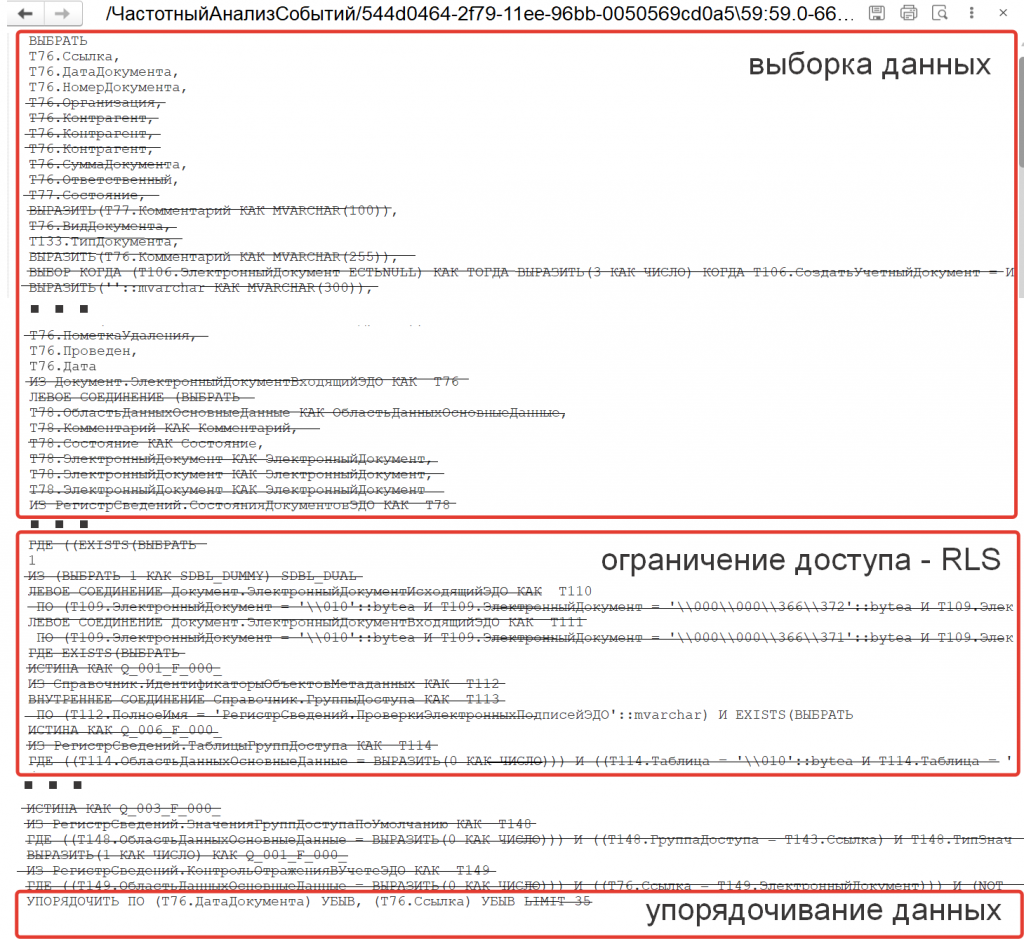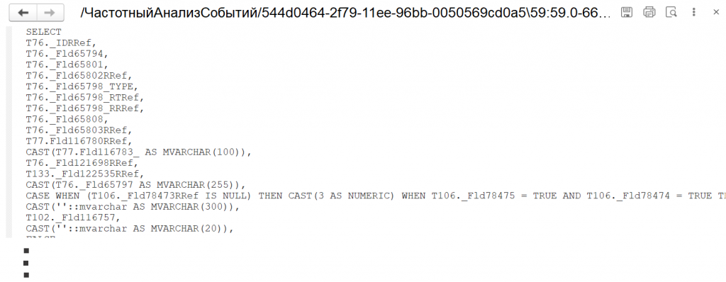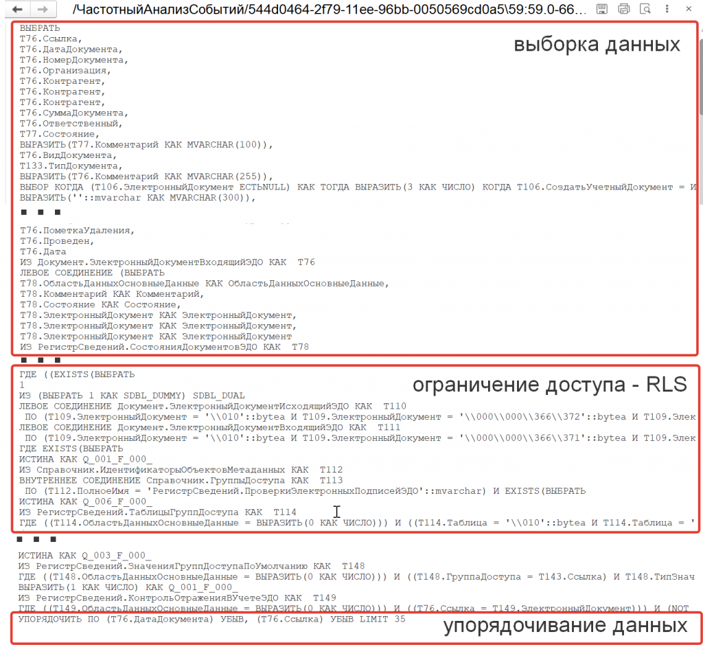 Результат: После преобразования мы получаем запрос в понятных терминах метаданных 1С, что значительно упрощает дальнейший анализ (см. рис. ниже).