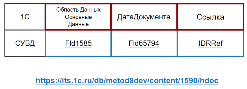 Рис. 11. Структура индекса уровни метаданных 1С и СУБД