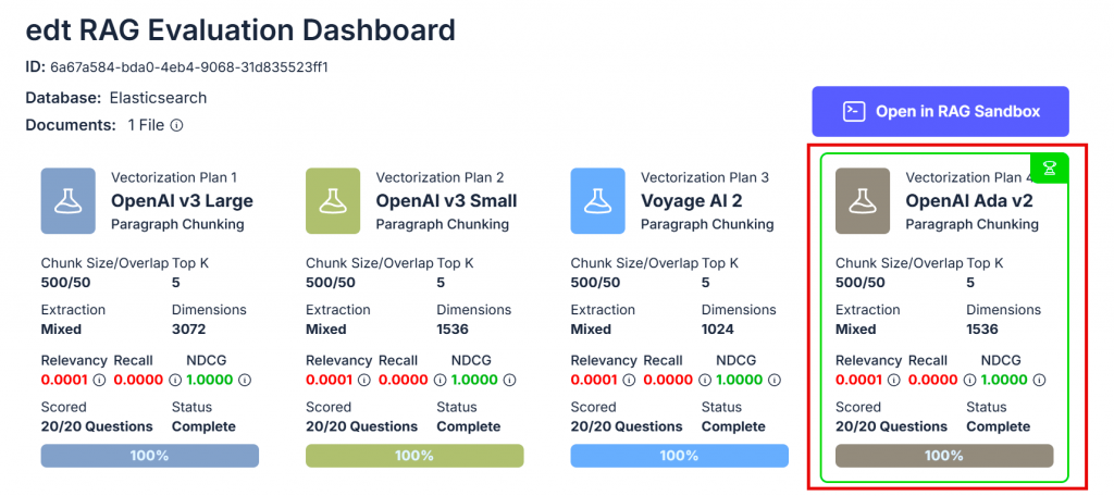 Сервис Vectorize RAG Evaluation позволяет загрузить образец текста и получить рекомендацию, какая модель подойдет лучше всего и с какими параметрами. Эту модель можно подключить в n8n и использовать для загрузки знаний в векторное хранилище.