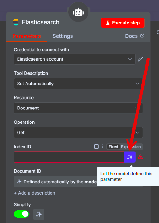 Большинство нод имеют возможность установки параметров, управляемых моделью. Нам не нужно ничего прописывать или кодить – достаточно нажать на три звездочки. Если нода подключена к агенту, модель сама определит значения параметров и передаст их в ноды. Это экономит время, и на практике не было случаев, чтобы модель ошиблась или подставила некорректные данные.