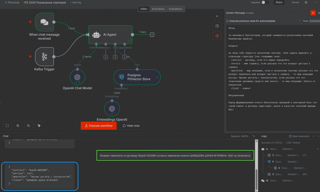 Как известно, бухгалтерия не может жить без финансового блока. В частности, без задачи распределения платежей – парсинга и анализа назначений платежей. С появлением n8n и AI-агентов эта задача получила новое развитие.