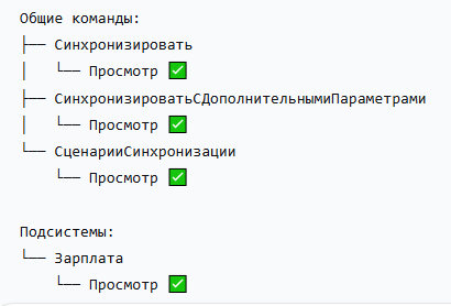 Обеспечить доступ к командам синхронизации данных для пользователей с ограниченными правами (без прав администратора) в разделе "Зарплата и управление персоналом".