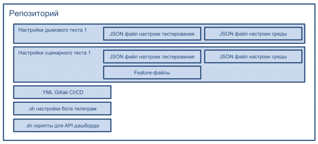 настройки сценарных тестов – где они применяются, а также feature-файлы, содержащие сами сценарии тестирования;