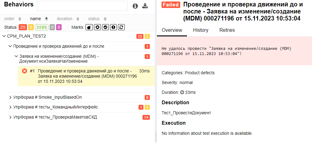 Кроме того, независимо от проверяемого документа, мы заранее загружаем корректные документы – ПТС, КПТУ, заказы поставщику – со всеми их движениями и ссылками. Например, в регистрах, где хранятся связи между документами, мы тоже подставляем нужные данные. Таким образом, система всегда получает все необходимые данные для теста, даже если их не было в базе изначально. Это позволяет избежать падений тестов.