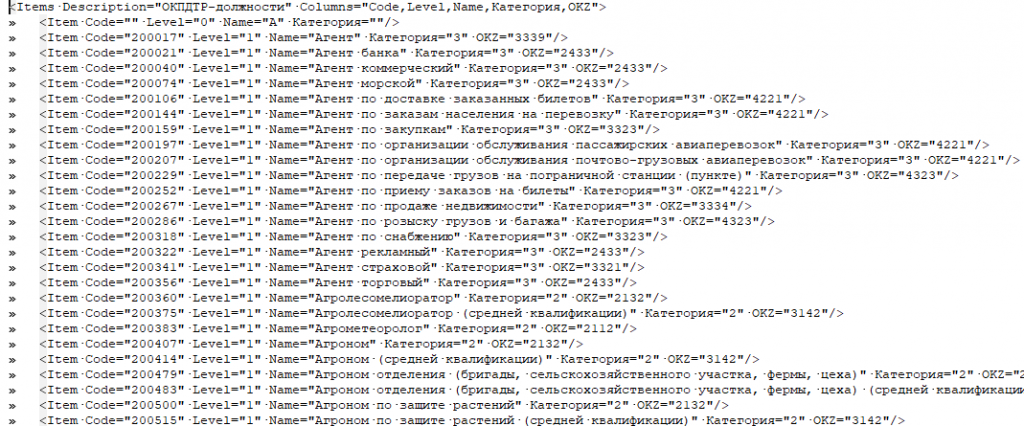 В практике кадровых аналитиков нередко возникают нестандартные задачи, требующие нетиповых решений. Одной из таких задач является необходимость извлечения наименований должностей в отчеты не из привычных справочников системы 1С, а непосредственно из общероссийских классификаторов, таких как ОКПДТР (Общероссийский классификатор профессий рабочих, должностей служащих и тарифных разрядов). Данные классификаторы хранятся в общих макетах программы в формате XML, что создает определенные технические сложности при работе с ними.