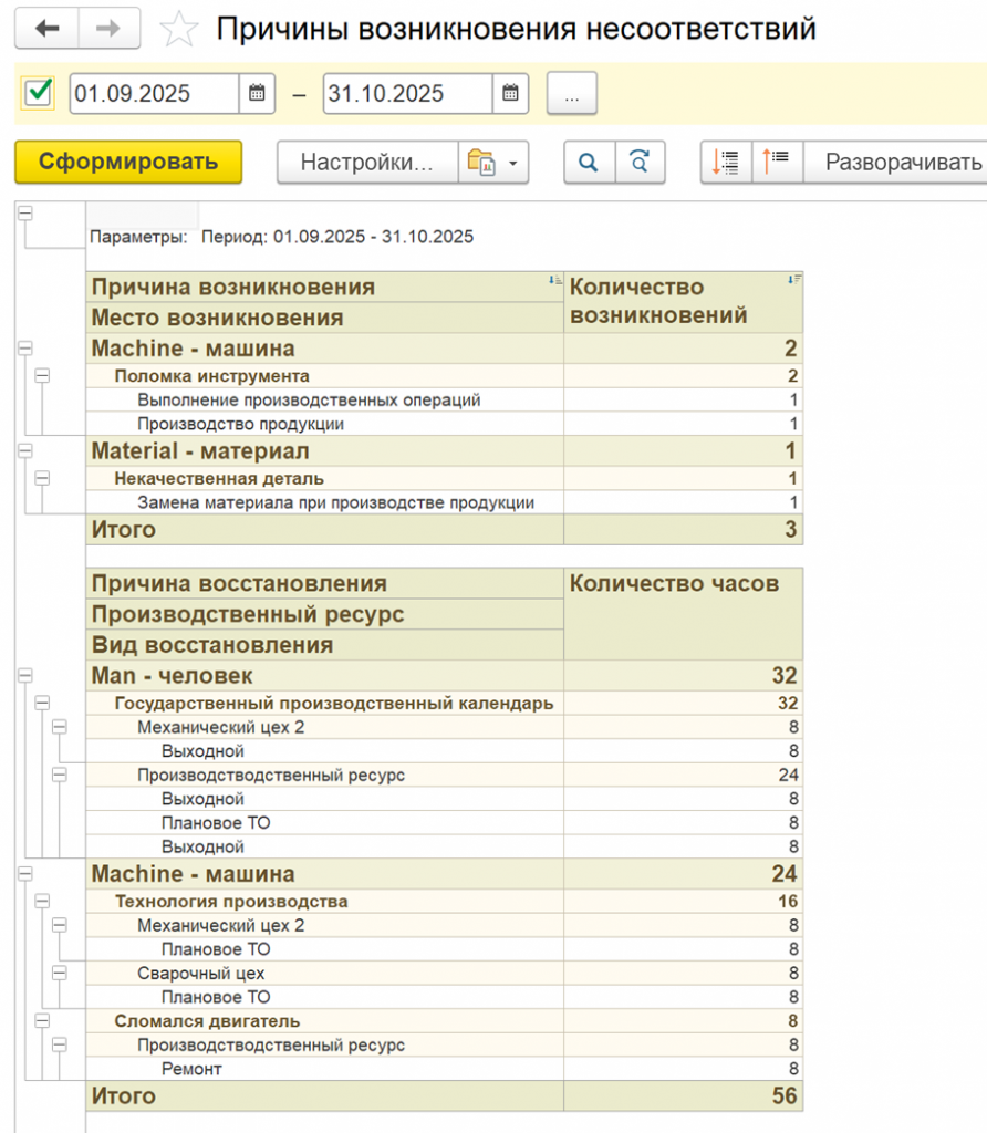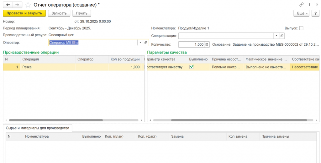 4. Планирование и контроль. Производственное расписание составляется на основании указанных операций, формируя задания на каждом участке. После выполнения операций создаются отчёты операторов, содержащие данные о качестве выполнения каждой отдельной операции.