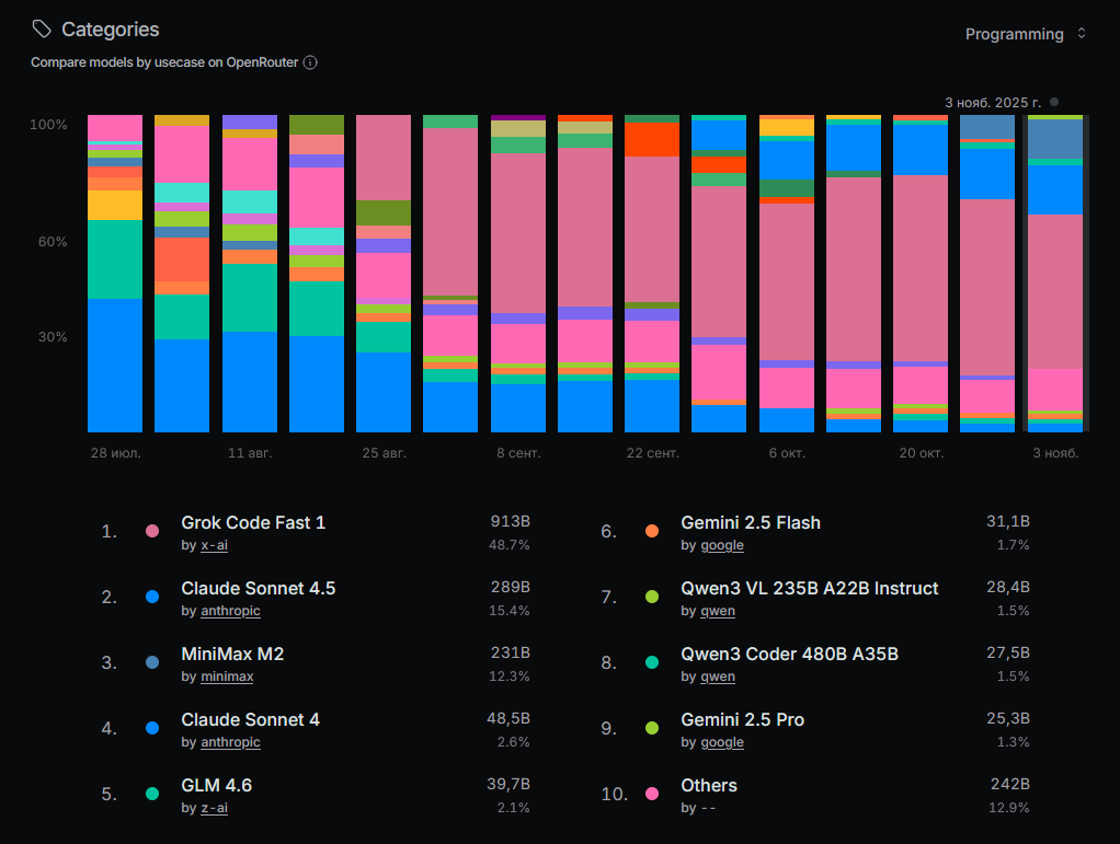 Главным вопросом стало то, способна ли модель делать это также эффективно, как хороший программист. Именно тогда появились заголовки вроде «ChatGPT вошел в десятку лучших программистов мира» или «AI выиграл международную олимпиаду по программированию». С этого момента начался стремительный рост и развитие бенчмарков.