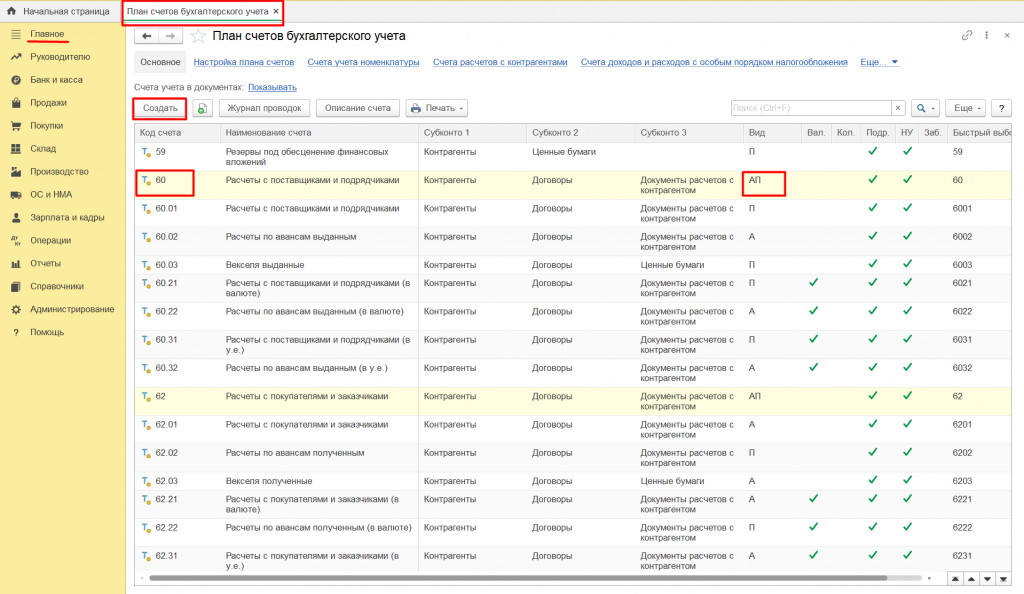 В "1С: Бухгалтерия" настройка синтетических и аналитических счетов осуществляется через план счетов. Для этого необходимо: