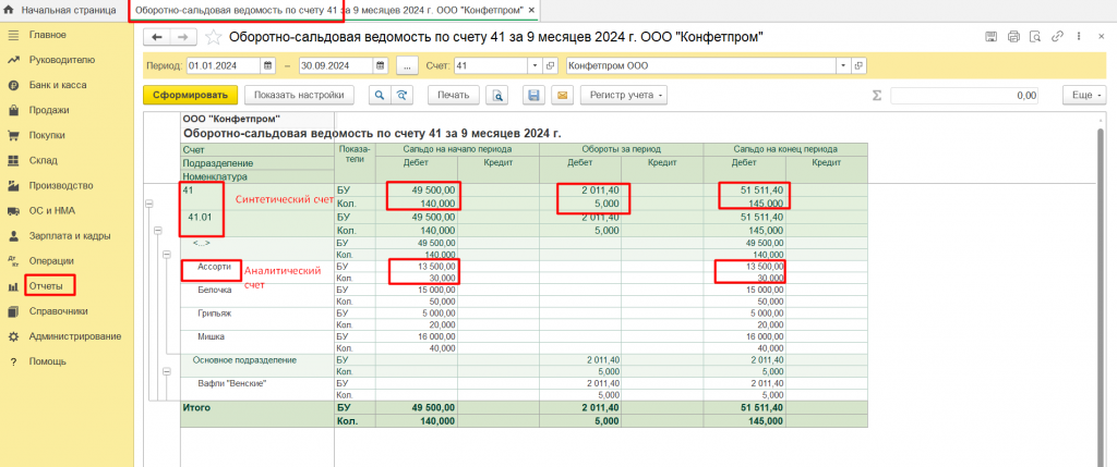 - Учет товарных запасов: Счет 41 "Товары" может быть синтетическим, а аналитические счета могут отражать остатки по каждому виду товара или по каждому складу.