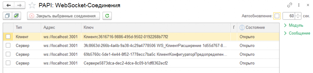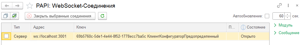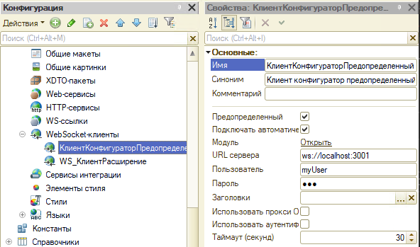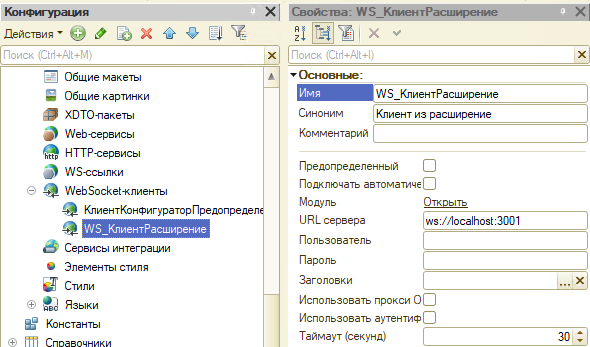 В конфигурации у нас уже подготовлены WebSocket-клиенты.