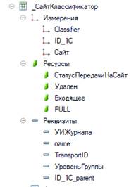 2. На основе схемы xtdo на стороне 1С созданы новые объекты, которые в дальнейшем будут отражать данные на сайте. Эти данные получились двух типов: Справочники и РегистрыСведений.