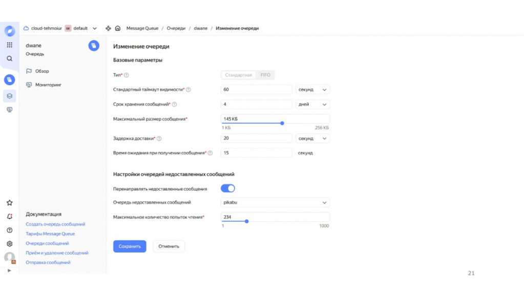 Чтобы попробовать этот брокер, достаточно зарегистрироваться в Яндекс.Облаке. Сразу после регистрации у вас уже будет готовая админка – там вы можете создавать очереди, менять их настройки, смотреть графики и так далее.