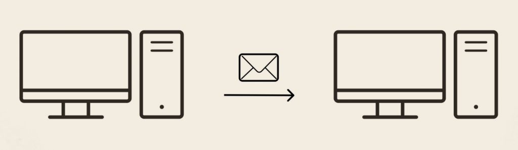 На схеме – суперпростая схема обмена данными. Какая-то система отправляет в другую систему какие-то данные; общаются они напрямую, например, через веб-сервис.