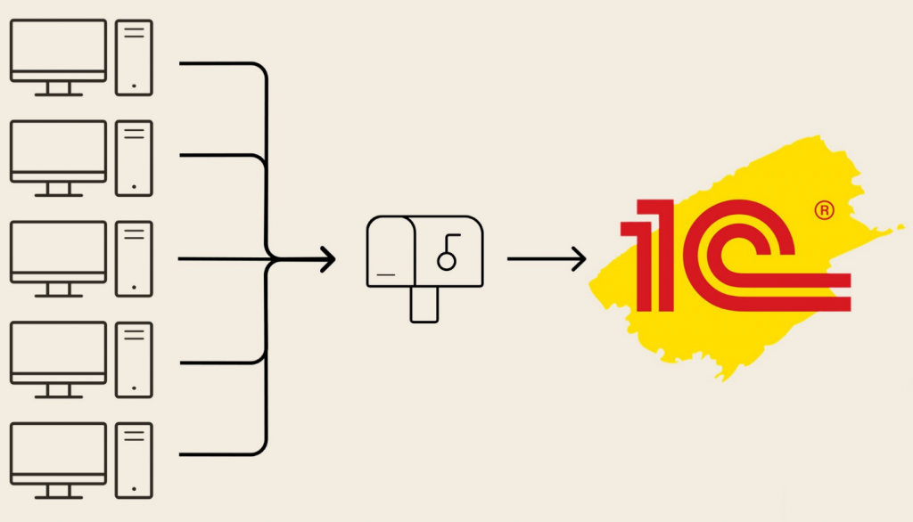 Или похожая ситуация: когда вместо одного сайта с кучей заказов у вас много разных систем, которые идут в вашу 1С, она будет просто перегружена.