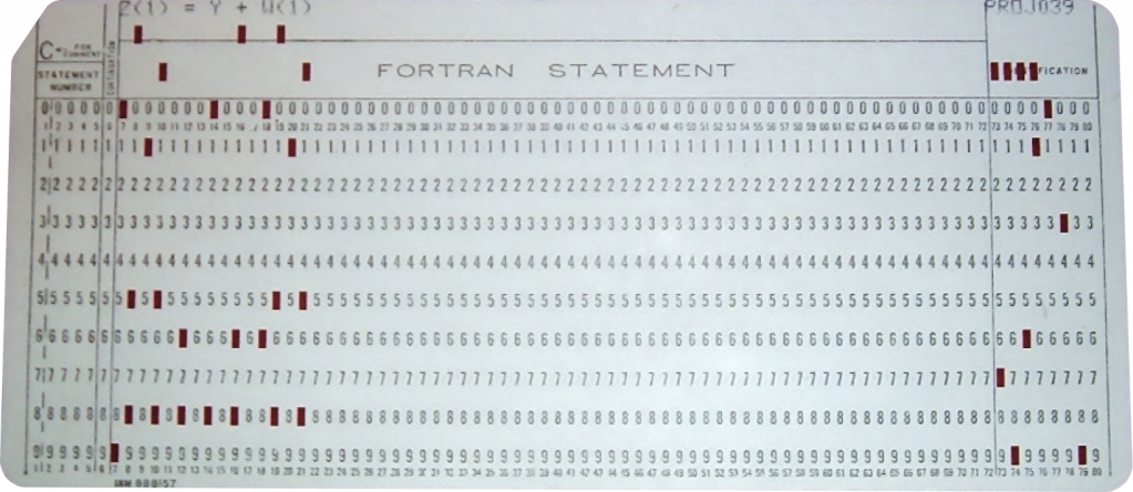 Это перфокарта. В прошлом долгое время она была основным инструментом для хранения и загрузки данных в память компьютера. Компьютеры раньше были огромные, стоили миллионы и занимали целое здание. Вы не могли просто прийти, сесть за монитор этого компьютера и что-то программировать. Программы хранились и загружались в компьютер с помощью такого кусочка картонки.