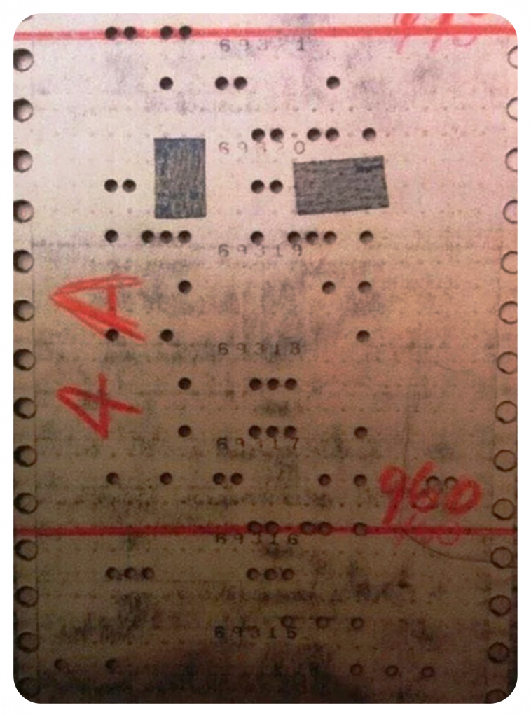 Это фотография, на которой на реальной перфоленте дырки были заклеены лейкопластырем. Вот таким нехитрым образом в прошлом вносились быстрые исправления в программы.