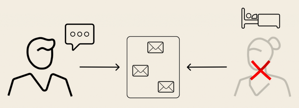Представьте, что я сейчас недоступен для звонка. Например, еду за рулем, телефон сел или вообще сплю. Вы будете нервничать, названивать, тратить свое время – или вообще перестанете звонить. Тогда то, что вы хотите мне сказать, для меня потеряется.