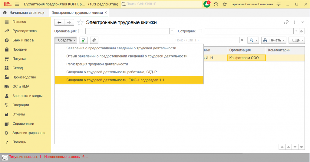 Как в 1С:Бухгалтерии сделать запись о переходе на электронную трудовую книжку