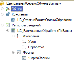 В центральном сервисе обмена мы сделали размещение обработок по базам. Если узел не заполнен — обработка уходит во все базы. Если заполнен — только в нужную.