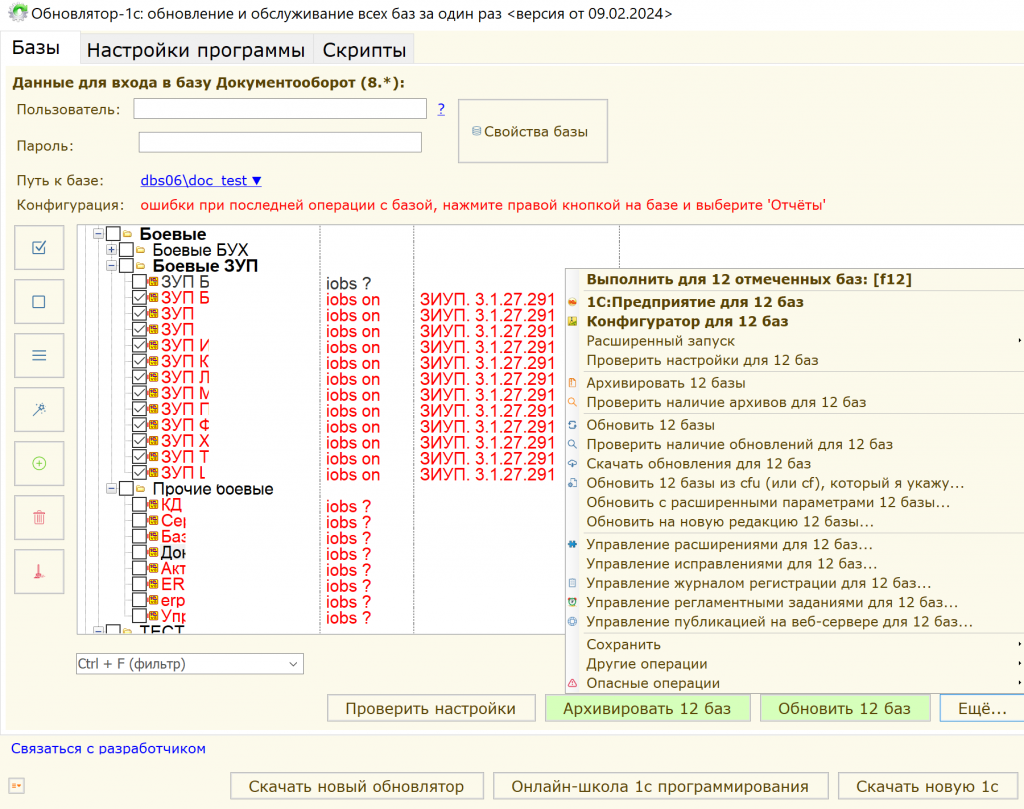 Инструментов для администрирования баз у нас не было. Хотя на одной из предыдущих работ мы использовали хитрый метод: все базы были прицеплены к одному хранилищу конфигурации. Был мастер, который в своей базе смотрел, что изменилось в новом обновлении, добавлял нужное, ставил, тестировал. После этого наши 20–30 баз пачками подключались к хранилищу: загружали конфигурацию, применяли изменения — и готово. На одну базу уходило минут 20–30, зато был гарантированно одинаковый результат. Здесь же ничего подобного внедрено не было. Я уже начал планировать это сделать, но в итоге всё-таки согласовали и купили обновлятор.