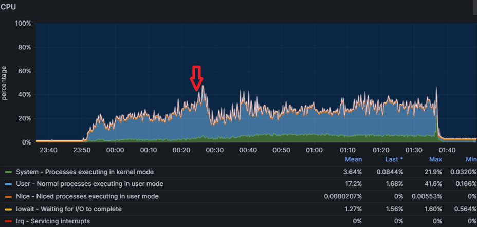 На сервере СУБД нагрузка на CPU была примерно такой же: