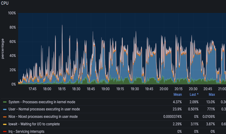На сервере СУБД нагрузка на CPU была примерно такой же: