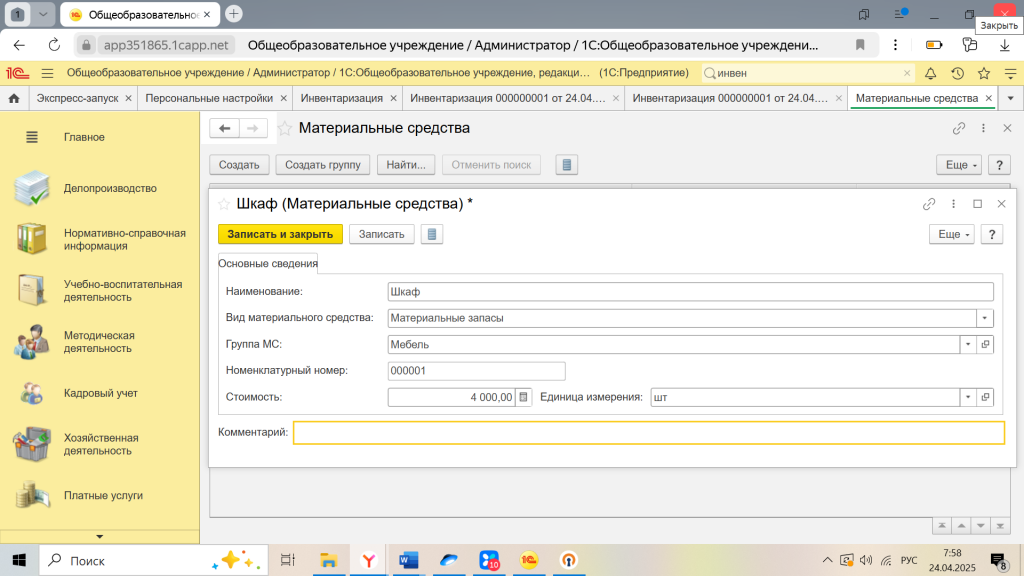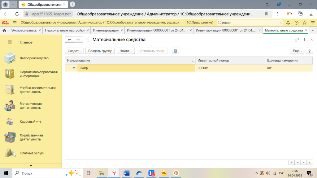 - Фиксировать все основные средства и инвентарь, используемые в учреждении (мебель, техника, оборудование, учебные материалы и пр.);