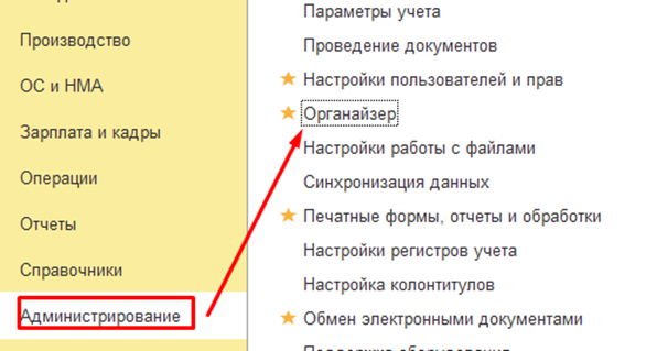 2. Перейдите в "Настройки программы" → "Органайзер".