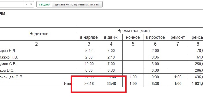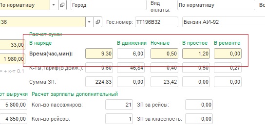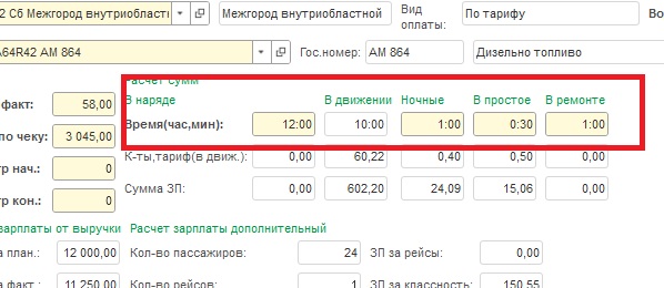 Есть документ "Путевой лист". Для учета времени работы в наряде - созданы в данных документа два реквизита: